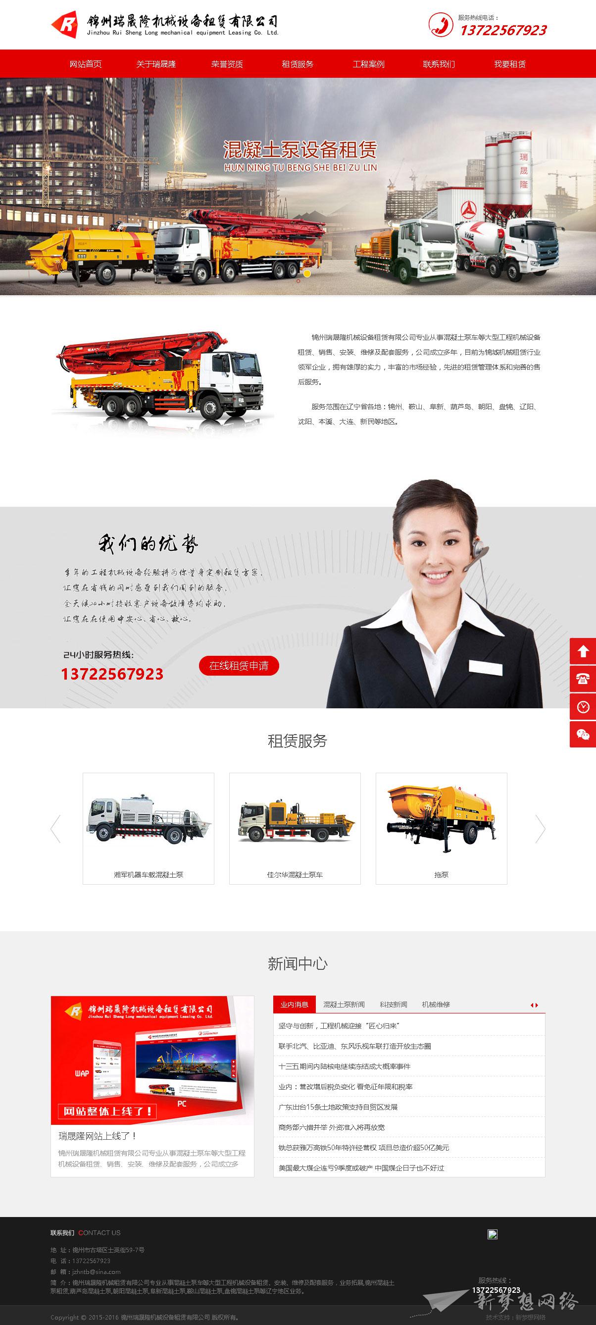 錦州瑞晟隆機(jī)械租賃有限公司專業(yè)從事混凝土泵車等大型工程機(jī)械設(shè)備租賃、安裝、維修及配套服務(wù),業(yè)務(wù)拓展,錦州混凝土泵租賃,朝陽混凝土泵,阜新混凝土泵,凌源混凝土泵,葫蘆島混凝土泵,朝陽混凝土泵,阜新混凝土泵,鞍山混凝土泵,盤錦混凝土泵等遼寧地區(qū)業(yè)務(wù)。